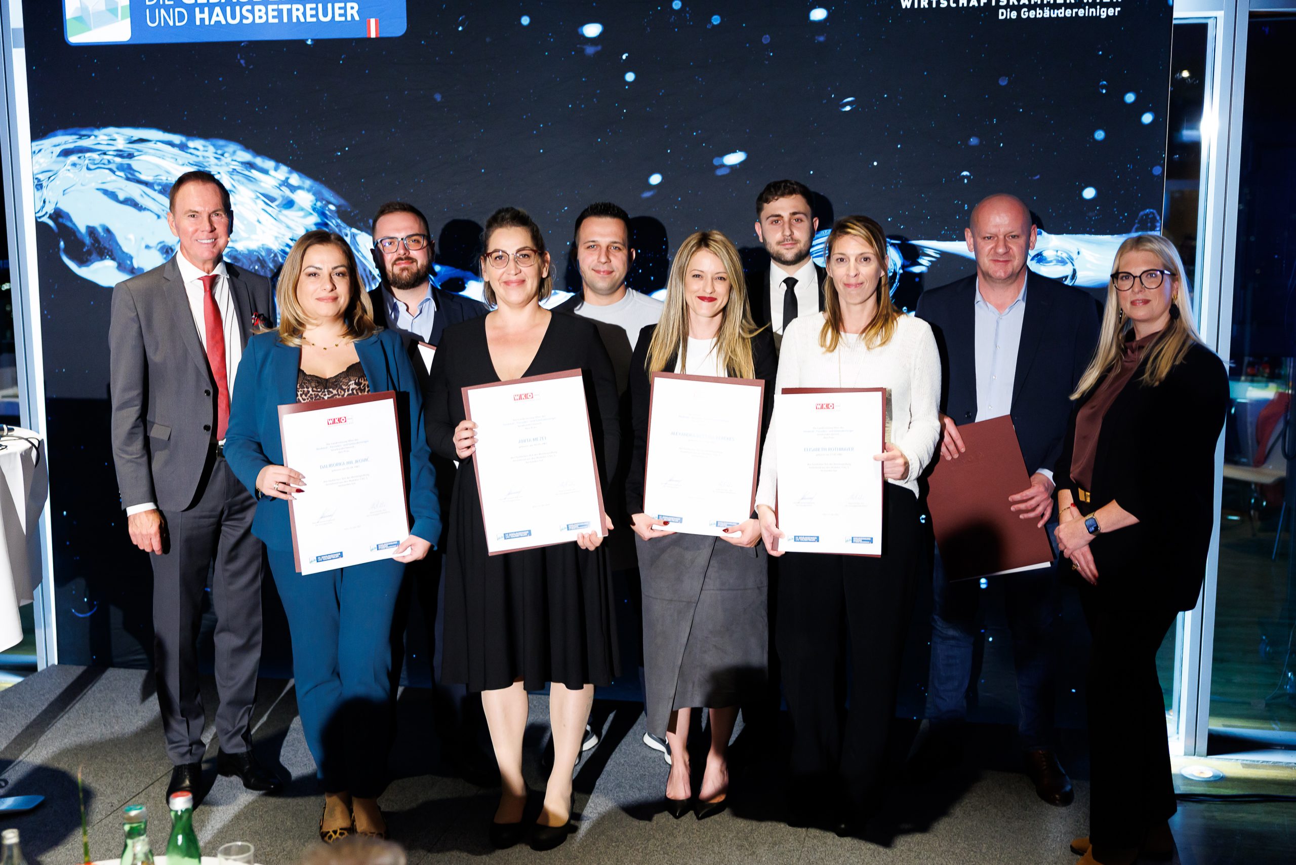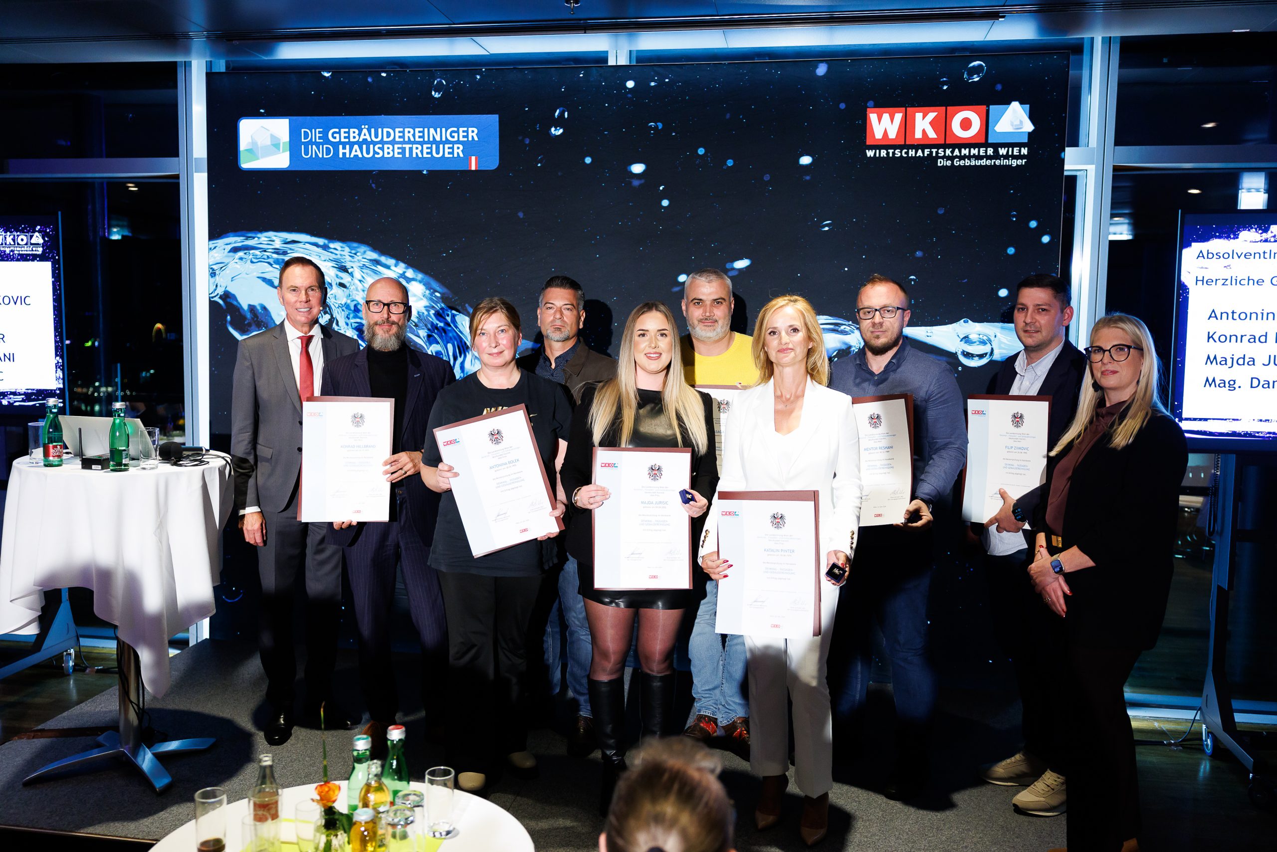 mehr lesenMeister oder Meisterin eines Fachs zu sein ist etwas Außergewöhnliches – für 35 Wienerinnen und Wiener der Landesinnung Denkmal-, Fassaden- und Gebäudereiniger wurde es spätestens am 25. April 2024 zur Realität. Sie wurden für die erfolgreiche Absolvierung der Meisterprüfung 2023 geehrt. Gemeinsam mit Charly Lechner, Obfrau-Stellvertreter der Sparte Gewerbe und Handwerk, überreichte Innungsmeister Gerhard Komarek